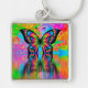Clásica Psicodelic Mariposa Gran Premium Square Keychain de color completo, impresión de sangre completa Color plateado Metalizado Encanto y anillo Resistente a UV e impermeable Añadir fotos, dibujos y textos Sin pedido mínimo
