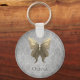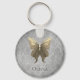 Guarde sus llaves para su coche y su hogar con una cadena de teclas de mariposa con joyas. El diseño de la cadena de claves presenta una mariposa con joyas vibrantes contra un elegante patrón de damasco gris vintage. También hay artículos de regalo adicionales disponibles con este diseño.