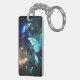 Fabuloso, brillante, azul y amarillo, mariposa nocturna sobre fondo oscuro.