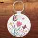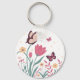 Llavero Mariposas con tulipanes rosados y margaritas amari