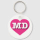 This key chain features a vibrant hot pink heart containing the bold, white, upper case letters MD, the official abbreviation for Maryland, the old line state.
