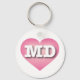 Este llavero presenta un corazón tranquilo, fresco y recogido de color rosa con un centro blanco lavado que contiene las letras negrita, blanca y alta del funda MD, la abreviatura oficial de Maryland, el estado de la antigua línea.