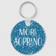 Un diseño divertido y feliz Más Soprano con fondo azul con texto blanco y notación musical.