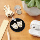 Este sencillo diseño con máscaras dramáticas en blanco, negro y oro es una manera elegante de mostrar tu afiliación al mundo del escenario y la pantalla - como actor, escritor, director, productor o equipo.