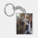 Un keychain con dos fotos de mascotas.