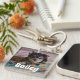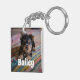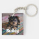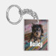 Este adorable keychain mascota presenta una de tus fotos favoritas de animales con el nombre de tus mascotas escrito a continuación en un divertido y juguetón tipo blanco. ¡Un toque de queda para los dueños de perros!