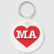 This key chain features a vibrant red heart containing the bold, white, upper case letters MA, the official abbreviation for Massachusetts, the bay state.