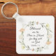 La cadena de claves de las escrituras inspiradoras representa una simple corona floral con flores y flores y vegetación rosa y blanco suave. Presenta una parte de las Bestias, la amada enseñanza de Jesús del Sermón del Monte, Biblia Verse Mateo 5:8, "Benditas son las Puras en el Corazón, porque verán a Dios".