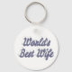 Cadena de claves con la mejor esposa del mundo en texto azul-gris 3D. Las cadenas de clave redonda y cuadrada están disponibles en varios tamaños.