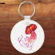 arte acuático tradicional de una medusa de color rojo y naranja con tentáculos rosas sobre una cadena de llaves.