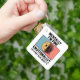 A minimal pastel keychain featuring a split-screen illustration—a smiling face on one side and chaotic scribbles on the other—paired with the relatable quote: