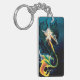 Una sirena de cabello blanco con un dragón verde oscuro juntos en el océano