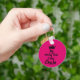 La cadena de teclas de botón redondo incluye el divertido texto "Mi moño es mi corona" y una corona sobre fondo rosado caliente. Las cadenas clave hacen regalos memorables para la familia y los amigos o crean para ustedes mismos.