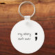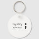 Un sencillo llavero blanco que dice "mi historia no ha terminado" con un punto y coma.