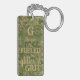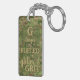 Carry your keys with this Fueled by Glitter & Grit double sided keychain. Designed with a bold faux glitter camouflage pattern in military shades of green and brown, accented with tan and beige, this keychain blends fierce energy with a touch of style.