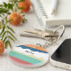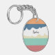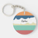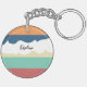 Un bonito y minimalista llavero en tonos retro de mostaza, azul, verde mar, taupe.