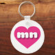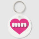 Esta cadena de claves presenta un vibrante corazón rosado caliente que contiene las letras fundas más bajas, redondeadas, blancas y negrita, una versión juguetona de la abreviatura para el estado de Minnesota, el estado de Estrella del Norte.
