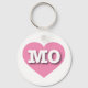 Este llavero cuenta con un vibrante corazón rosado que contiene las letras negrita, blanca y alta del funda MO, la abreviatura oficial de Missouri, el estado Show Me.
