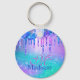 Llavero Moda azul púrpura purpurina laca monograma
