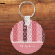 Añada un estilo elegante a su estilo personal con esta cadena de teclas con rayas de chevron rosadas variadas. Personalice este diseño de zigzag rosa de moda añadiendo el nombre de cualquier mujer moderna.