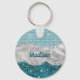 Un purpurina alegre de menta, verde verde azulado y falso diseño de purpurina plateado. Elegante cadena de teclas Monograma Purpurina. Personalízalo con su nombre, monograma u otro texto deseado. Esto hace que el dulce perfecto cumpleaños 16, boda, ducha de novia, aniversario, ducha de bebé o fiesta de soltera sea regalo para alguien que ama el lujo glam y los estilos de moda. Ya sea para día de San Valentín, Navidades o cualquier ocasión en general, este lindo keychain hará una gran idea de regalo para todo aquel que ame la moderna y brillante elegancia! NOTA: Se trata de gráficos impresos planos, sin purpurinas, joyas ni piezas elevadas.