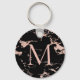 Relieve metalizado dorado Monograma Keychain de Rosa de mármol negro con rosa de cobre de moda de oro/rosa sobre mármol negro y su monograma personalizado. Ideal para tu estética de lujo.