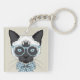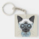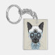 Características del este diseño que un gato siamés se vistió en un par azul de vidrios y de pajarita a cuadros.