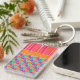 Una cadena de claves acrílicas fría y oblonga para personalizar, con un patrón islámico tradicional en rosa brillante, naranja, azul turquesa y verde claro, en equipo con rayas coincidentes. Parte de la colección "islámica" de Posh & Painterly.