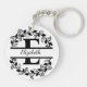 Llavero Modern Black Floral Wreath Split Monogram "E"