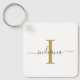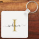 Gold Gray Monogram Script Name Modern keychain you can easily edit with your name and initial by clicking the "Personalize" button. Completely change the colors of the text and background when you select the "Customize this" link.