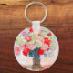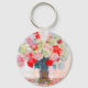 Cadena de claves con la pintura floral de Claude Monet. Hermosas peonías rojas, amarillas y blancas en un jarrón azul. Un gran regalo de Monet para los amantes del impresionismo y el arte francés.