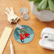 Echa un vistazo a un mono calcetín montado en su motocicleta Vespa roja vintage mientras te da una ola hola! Este ilustracion de calcetines sería genial para los fanáticos de Vespa y de los monos por igual.