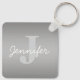 Llavero Monograma blanco cursivo y gris | Colores editable