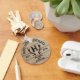 Celebra el día de la boda o el aniversario de una novia y novio especial con este personalizable estilo logo de una destilería estampado en la tapa de un barril de roble bourbon. Debajo de un texto en arco que dice "100% de amor, destilado", aparece un monograma entre las cuerdas de ciervos, los nombres de la pareja y el año boda, en un fondo que parece tablones de madera. ¡Hace un regalo de aspecto rústico, moderno y personalizado!
