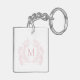 Clásico Rubor Escudo floral rosado Monograma Keychain