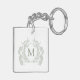 Clásico Escudo floral verde de salvia botánica Monograma Keychain