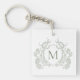 Llavero Monograma clásico del Escudo floral verde de sabio