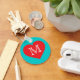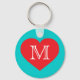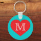 Este llavero presenta un corazón rojo que contiene un monograma de plantilla inicial sobre un fondo azul. Haga clic en "¡Personalizar!" para redimensionar/reposicionar el corazón rojo. Gran favor de fiesta para bodas, fiestas de compromiso y celebraciones de San Valentín o aniversario.
