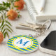 Llavero Monograma de franjas azul y amarillo brillante