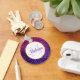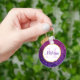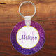 Un llavero de diseño elegante y elegante. El fondo está compuesto de piedras preciosas purpurinoso rosas y violetas. La moda y la violencia femenina. Un círculo con un borde falso-dorado-Relieve metalizado sobre la parte superior con su monograma inicial y su nombre dentro.