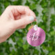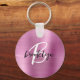 Esta elegante cadena de claves personalizada presenta un monograma y un nombre en un guión moderno en blanco y negro sobre un fondo metalizado rosado.