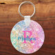 Llavero Monograma de imitación rosa de iridiscino blanco u