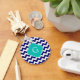Patrón ZigZag azul y blanco de chevron, etiqueta de quatrefoil Verde azulado Monograma Un elegante, moderno y de moda chevron zig-zag en azul marino y blanco. Personalizar la etiqueta verde azulada de quatrefoil con su monograma, nombre u otro texto. (Haga clic en "Personalizar" para cambiar el tipo de letra, ajustar el tamaño del tipo de letra, los colores del tipo de letra, etc.) Si quieres este diseño / etiqueta en otros colores, simplemente envíanos un correo electrónico. 2013 ©FantabulousPatterns Todos los derechos reservados