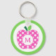 Llavero Monograma de manzana con lunares rosados y verdes