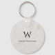 Llavero Monograma de mármol blanco Nombre negro moderno e