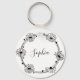 Llavero Monograma de nombre blanco y negro elegante y glam