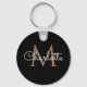Llavero de monograma negro y dorado chic. Puedes personalizar el nombre, monograma y personalizar la fuente y los colores para crear tu propio diseño único. Diseñado por Thisisnotme