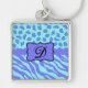 Llavero Monograma de piel de leopardo cebra de cebra de la