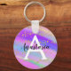 Keychain de Girly y Glam con un fondo de arcoiris de unicornio colorido, y un purpurina de oro destellan confetti. Personalice su nombre personalizado en negro y su monograma inicial en blanco. Puede cambiar el color del texto y el estilo y el tamaño del tipo de letra mediante la opción personalizar.