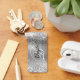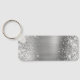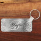 Elegante purpurina plateado con chispas contra una falsa imagen gráfica clásica de Relieve metalizado metalizado de color gris claro. Se puede personalizar el lujoso monograma de caligrafía elegante en blanco y negro del centro. Todos los elementos brillantes y brillantes de este moderno diseño giratorio son gráficos digitales. Festividades en cadena de claves valiosas monogramadas para su celebración especial de cumpleaños. Un buen tamaño para el anillo de claves de un empleado.